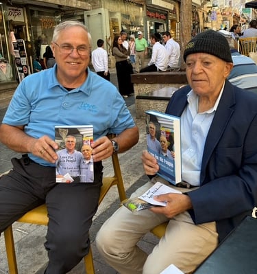 Laurie and I, through the ministry of Love For His People we founded in 2010, give love and support for our friends in Israel with humanitarian aid, social media support, Steve's messages of encouragement, and our Ahava Adventures annual trips to Israel. Steve has also authored and published 39 books. We live in the Charlotte, NC area, and have four adult children, spouses and eight grand kids.